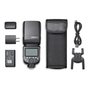 Itens inclusos: 01 flash godox ving v860iii ttl para câmeras canon 01 bateria de lítio 01 carregador de bateria 01 cabo usb 01 suporte/base 01 capa protetora