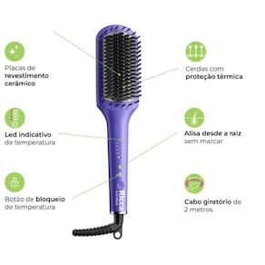 A Escova Alisadora Flat Brush Ricca é a solução perfeita para modelar e alisar os cabelos da raiz até as pontas, de forma uniforme e eficiente. Fácil e prática de usar, proporciona resultados impecáveis sem marcar os fios.SUGESTÃO DE USO:1- Lave e deixe seus cabelos secarem completamente antes de usar a escova alisadora.2- Escolha um protetor térmico da sua preferência para proteger os fios.3- Ligue a escova, selecione a temperatura desejada.4- Note que o led indicador da temperatura piscará até a temperatura chegar na opção desejada.5- O led indicador se manterá aceso quando a escova atingir a temperatura desejada e pronta para ser utilizada.6- Separe uma pequena mecha de cabelo e passe a escova suavemente da raiz às pontas, fazendo movimento de escovação para modelar.7- Evite pressionar a escova em um único lugar por muito tempo para evitar danos e marcações indesejadas ao fio de cabelo e ao couro cabeludo.8- Repita o processo em todas as mechas até alcançar o visual desejado.CARACTERÍSTICAS:- Tecnologia Flat Liss- Cerdas Espaçadas- Led Indicativo de Temperatura Com 4 opções de temperaturas: 160°C, 180°C, 200°C e 220°C- Bivolt- Cabo de 2 metrosINFORMAÇÕES ADICIONAIS:Tecnologia Flat Liss:Placas com acabamento cerâmico com controle de temperatura: Não danifica os fios e facilita o processo de alisamentoCerdas Espaçadas:Deslizam uniformemente pelo cabelo, alisando da raiz as pontas.