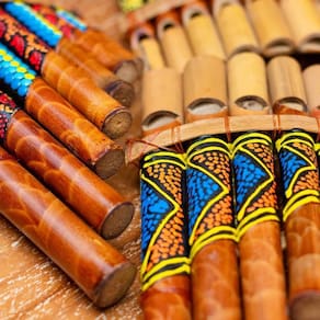 Flauta de Pã 8 Tubos Colorida Importada de Bali Flauta de Pã 8 Tubos Importada de Bali A Flauta de Pã é um instrumento musical de sopro constituído por um conjunto de tubos fechados numa extremidade, ligados uns aos outros. Possui diferentes nomes em todo o mundo. Dependendo de onde foi construída pode possuir diferentes tamanhos, notas e tipos de canas. A música é a essência de Bali, muito utilizada em suas manifestações artísticas. O som se faz presente de muitas formas e em muitos rituais. os instrumentos musicais são produzidos com viés artístico, são artesanais e geralmente com pinturas coloridas com a técnica aborígene de pontilhados dots , característica dos nativos australianos, que habitam grande parte do território do país. A Flauta de Pã Balinesa possui 8 tubos e é feita de bambu. Ela pode, também, ser Utilizado como peça decorativa. Material: bambu Cor Predominante: Colorido Peso: aproximadamente 70g Largura: 11cm Altura: 16,5cm Profundidade: 1cm Origem: bali O produto é artesanal, fabricado e de Bali e por isso pode apresentar pequenas variações de cor, tonalidade, brilho, peso e tamanho. Não deixe a sua peça em contato prolongado com a água, a não ser que seja peça que possa ser exposta ao sol e chuva. As fotos são ilustrativas. Qualquer produto adicional utilizado na composição das fotos deve ser comprado separadamente. Marca: Não Informado Ean: 7907954913932