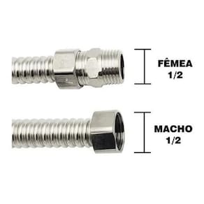 Descrição: Tubo metálico flexível para condução de água quente ou fria na instalação de aquecedores e metais sanitários. Na extremidade da fêmea giratória porca giratória , é fornecido anel de vedação em borracha nitrílica. Roscas conforme nbr 8133. Acabamento externo do tubo flexível e terminais em cromo brilhante.