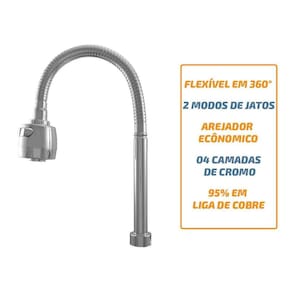 Flexível para Torneira Gourmet Tubo Completo 3/4 CozinhaO uso deste tubo permite que você possa transformar sua torneira fixa em uma torneira totalmente móvel.As vantagens da utilização deste do tubo Gourmet são várias:- Manuseio em 360lhe fornecendo muito mais praticidade ao lavar-louças;- Duas opções de jatos, modo chuveirinho libera maior alcance em expansão da água;- Arejador econômico, reduz o gasto desnecessário de água;- Flexível fabricado com liga de cobre, material super resistente para uso diário;- Arejador prático, retém impurezas como pequenas pedras;- Sobreposto com quatro camadas de banho de cromo, maior brilho e qualidade na pintura;COMPATIBILIDADE- O tubo Gourmet é compatível com qualquer torneira que tenha a entrada do tubo em 3/4 removível;- A base da sua torneira precisa ter no mínimo 1.2 cm de rosca para que a bica fique totalmente firme;- Caso não encaixe em sua torneira com base em 3/4 é só trocar a borrachinha de vedação do tubo atual pelo do tubo que você tinha;- Pode usar em torneiras de cozinha, banheiro, tanque, área de churrasco etc..Especificações Técnicas:Produto: Tubo Gourmet 3/4 2 Opções de Jatos Para Torneira;Tamanho Tubo Estendido: 40 CM;Material do Tubo: Liga de Cobre;Material da Bica: ABS;Número de Jatos: 2 Opções de Jatos Continuo e Chuveirinho ;Garantia: 3 Meses; Marca: Dazie Metais