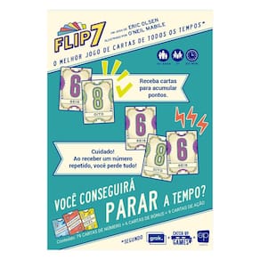 Em Flip7, são jogadas diversas rodadas até que um jogador alcance 200 pontos e vença a partida!
