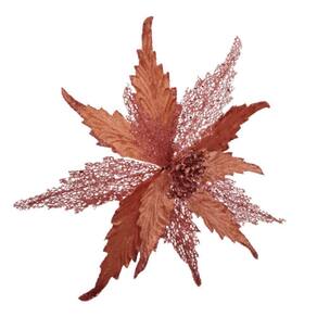Flor Artificial Natalina Poinsétia ;(Espirito Santo) em ;veludo e renda na cor rose gold com Haste de 50cm.
