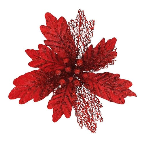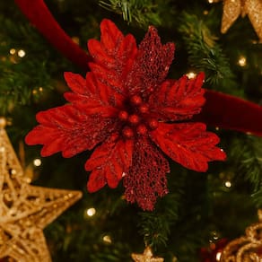 Crie composições natalinas exuberantes e memoráveis com a delicadeza e o brilho dessa flor recortada de luxo. Uma peça que une elegância, leveza e versatilidade para encantar em qualquer ambiente!