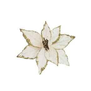 Com 18cm de diâmetro, a flor possui haste para fixação prática, garantindo firmeza e versatilidade na montagem. É ideal para composições natalinas refinadas e para criar arranjos únicos com um toque de requinte.