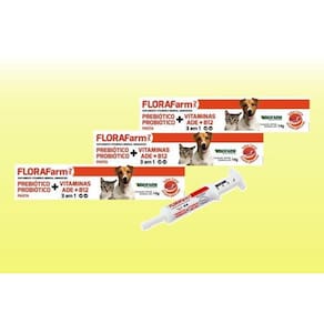 Florafarm Pet é uma pasta pronta para uso que melhora a saúde de cães e gatos em qualquer fase da vida.É um produto 3 em 1 por conter em sua composição prebióticos, probióticos e Vitaminas.Os Prebióticos ajudam no crescimento de bactérias benéficas e eliminam as bactérias patogênicas, melhorando assim a imunidade e a absorção de nutrientes do seu animal.Seringa dosadora com 14gOs Probióticos ajudam na absorção de nutrientes, ganho de peso e facilita as mudanças na alimentação, além de serem utilizados para prevenir infecções.As Vitaminas são o necessário para manter o seu animal sempre saudável.Responsável Tecnico:Dr. Naur Bellusci Filho - CRMV-Sp n6516