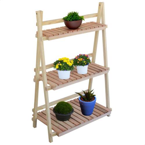 A estrutura dobrável facilita o transporte e armazenamento, tornando-a prática e versátil. Ideal para quem deseja expor plantas de maneira organizada e elegante, sem abrir mão da durabilidade e beleza da madeira natural.