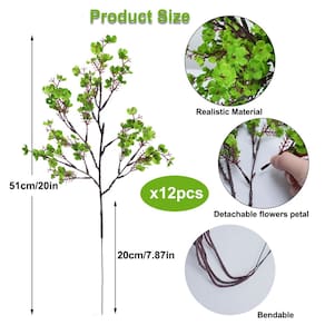 AILANDA 12 peças de flores artificiais para bebês buquê verde falso Gypsophila decorações de dia de São Patrício flores de seda falsas para casa festa de casamento cozinha primavera arranjos florais mesa centros de mesa - Conteúdo do produto: você receberá 12 feixes de flores verdes por pacote sem vaso, as flores do Dia de São Patrício têm 50 cm de comprimento, largura de aproximadamente 25 cm, cabe em um vaso de cerca de 20 cm de altura. Cada ramo tem cerca de 90 cabeças de flores. Se o seu vaso for mais curto, você pode dobrar o comprimento do caule - Materiais premium: os arranjos de flores de seda são feitos de pétalas e folhas de seda macias e seguras, parecem flores reais. Hastes com fio de metal, podem ser ajustadas de acordo com suas necessidades, e a cabeça das flores da primavera pode ser removida e instalada facilmente - Linguagem elegante das flores: flores artificiais para o hálito do bebê significam amor eterno, parecem muito realistas. Adequado para decoração de festival de primavera, casamentos, Dia de São Patrício, casas, livrarias, cafés, festas e várias ocasiões - Fácil de fazer você mesmo: flores de seda para hálito de bebê podem ser desinstaladas e instaladas, muito adequadas para fazer buquês DIY, arranjos de casamento, decoração de casa, mesa de jantar e decoração do dia de São Patrício - Dicas quentes: 1. Pode haver algum cheiro desde que feito de plástico. Coloque a planta de flor artificial em local ventilado por vários dias, se você se importar. 2. Se as pétalas caírem, basta inseri-las de volta na haste de plástico sem afetar o uso