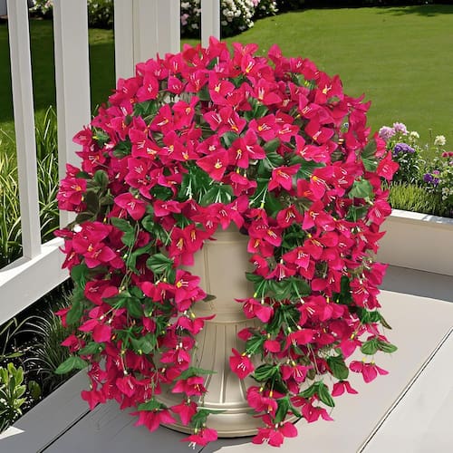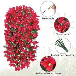 - Flores penduradas realistas: trabalhadas com pétalas de seda macias e folhas de plástico texturizadas, flores falsas para pendurar imitam flores naturais de buganvílias, com folhas densas e flores brilhantes, criando uma estética realista ao ar livre