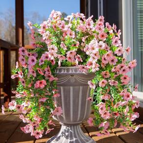 Plantas artificiais artificiais de flores externas, 2 peças de seda falsa resistente a UV com aparência de margarida rosa real para decoração de varanda e varanda - O pacote inclui: 2 feixes de flores artificiais de margarida à direita. - Durável e resistente ao clima UV: as plantas suspensas falsas são feitas de tecido de seda e plástico de alta qualidade, resistentes a UV e todas as intempéries, à prova d'água e não desbotam ao sol. - Plantas de ar livre com aparência real: essas flores falsas de margarida parecem reais, cores vibrantes que podem adicionar beleza natural à sua casa durante todo o ano. - Decoração para todas as ocasiões: lindas plantas artificiais para pendurar ao ar livre são adequadas para casa, jardim, varanda, pátio, varanda, quintal, caixa de janela, urna, plantador, caminho, entrada, porta da frente, canteiro de flores, decorações internas e externas. Traz beleza para sua casa em todas as estações. - Manutenção : sem necessidade de irrigação ou luz solar – essas flores artificiais permanecem frescas e vibrantes durante todo o ano.