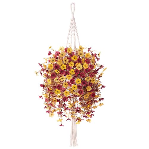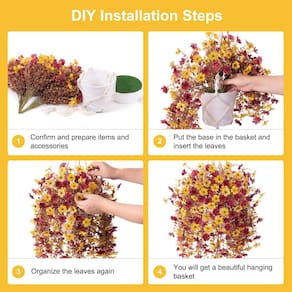 Flores de outono artificiais para decoração, flores artificiais realistas para uso ao ar livre, folhas de outono resistentes a UV, margarida, pátio, pátio, varanda, plantas falsas, dia de Ação de Graças, jardim, decoração de casa - Pacote de flores artificiais para decoração da primavera: o conjunto de flores artificiais para ambientes externos vem com uma cesta suspensa e 3 feixes de margaridas artificiais, projetadas especificamente para pendurar e arranjos de plantadores de varanda, o que o torna perfeito para aqueles que amam projetos de arte DIY. - Flores artificiais de eucalipto para atividades ao ar livre de alta qualidade: nossas flores falsas penduradas são feitas de material de seda premium para margaridas e plástico durável para as folhas de eucalipto. Resistente aos raios UV e às intempéries, garantindo beleza duradoura ao longo das estações. Flores externas artificiais. - Decorações de casa com flores artificiais de verão: estas plantas artificiais para pendurar adicionam um toque de elegância à sua casa, Dia de Ação de Graças, jardim, varanda, pátio ou janelas, adequadas para melhorias internas e externas. Uma bela maneira de trazer o charme da natureza para seus espaços. - Plantas artificiais realistas ao ar livre: com sua aparência realista, essas flores externas artificiais oferecem uma vibração elegante e autêntica, perfeitas para enfeitar sua casa, jardim, quintal, pátio ou varanda, misturando-se perfeitamente com ambientes internos e externos. - Margaridas com folhas de eucalipto: flores artificiais de alta qualidade, melhoram a atmosfera da sua casa com estes 3 feixes de flores de margarida combinados com folhas amarelas de eucalipto, projetadas para infundir seu espaço com a beleza da natureza.