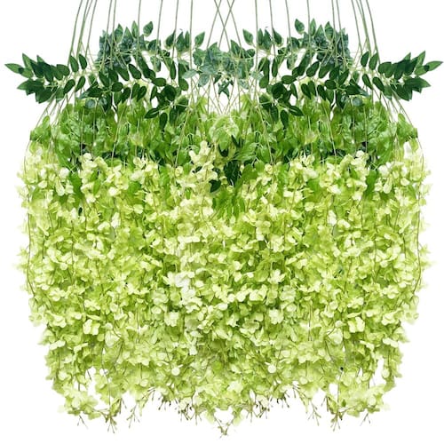 Flores artificiais para pendurar, guirlanda de flores de glicínia falsa, videiras de seda, decoração de corda de ratã para casa, casamento, arco, parede, jardim, vegetação, quarto, escritório, decoração de festa - Conteúdo da embalagem: embalagem de 6/12/24/36 peças, 4 combinações, 10 cores, para atender a todas as suas necessidades. Eleve sua decoração encantadora com flores brancas penduradas em cada pacote. Cada trepadeira de flores falsas possui 3 ramos, com o mais longo atingindo impressionantes 111 cm, acompanhado por duas videiras mais curtas de 60 cm. As guirlandas artificiais de glicínia abundantes garantem que seus desejos de decoração sejam lindamente atendidos. - ??Aparência natural?Mergulhe no fascínio da guirlanda realista de flores penduradas de glicínias feita de seda e plástico de alta qualidade. As pétalas de pelúcia, macias e vivas dão um toque requintado, flores artificiais para pendurar glicínias perfeitas para elevar a decoração de casamento e adicionar elegância à sua casa. - ??Uso versátil em várias configurações? Melhore qualquer ocasião com estas versáteis flores artificiais de glicínia penduradas. Flores falsas para pendurar glicínias perfeitas para casamentos, festas, casamentos, restaurantes, igrejas, arcos de banco, jardins, teto e centros de recepção. Pendure glicínias pendurando flores em paredes, portas, balanços, janelas ou qualquer local desejado para criar uma atmosfera cativante. - ??Instalação e remoção sem esforço? Desfrute de uma decoração sem complicações com hastes artificiais de glicínia feitas de arame durável e revestidas com plástico. Dobre-os em qualquer formato para cumprir sua visão criativa sem se preocupar com danos. Instale e remova sem esforço essas flores de glicínia falsas, simplificando seu processo de decoração. - Artesanato especializado para uma beleza duradoura: experimente um artesanato incomparável, já que as hastes dessas videiras artificiais de flor de glicínia são meticulosamente soldadas em altas temperaturas, garantindo uma ligação segura que resiste ao teste do tempo. A cor, aparência e sensação autênticas das flores de glicínia as tornam perfeitas para decoração interna e externa, adicionando um toque de estilo puro e natural a qualquer ambiente.