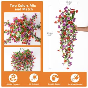 - Manutenção : sem necessidade de irrigação ou luz solar – estas flores artificiais penduradas permanecem frescas e vibrantes durante todo o ano. Com resistência aos raios UV e resistência à cor, as flores artificiais ao ar livre permanecem resistentes e vibrantes em qualquer condição climática. Aproveite sua beleza sem manutenção e o incômodo de regar