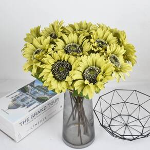 WISTART Flores de girassol artificiais verdes, 8 peças, haste longa única, girassóis falsos, buquê de casamento, arranjos de flores amarelas falsas para uso ao ar livre - Material: As hastes longas de girassóis artificiais são feitas de tecido de seda de alta qualidade, assim como a flor real e as hastes são feitas de arame de aço por dentro e plástico por fora, recomenda-se dobrar o caule para caber no vaso. - Tamanho: girassol falso altura: 15,74 polegadas / 40 cm, cabeça de girassol 5,5 polegadas / 14 cm de diâmetro. Este girassol de seda realista pode combinar rosas, flores de múmia pompom, hálito de bebê e hortênsias. - Flores de toque real: 8 buquês de girassol realistas nunca murcham e permanecem bonitos o tempo todo. Flores artificiais preservam a beleza das flores frescas, são mais baratas e duram mais do que flores frescas. - Arranjos de flores: decorações de casamento, buquês de noiva para casamento, boutonnieres, chá de bebê, decoração de casa para decoração de sala de estar ou cozinha, flores rosa amaranto em vasos para centros de mesa, suprimentos de festa, adicionando um pouco de calor ao escritório, decoração de mesa e buquê de girassol DIY. - Dicas quentes de girassóis falsos: a cabeça dos girassóis pode ficar ligeiramente comprimida durante o transporte, mas pode ser facilmente devolvida à sua forma correta. Não se preocupe, depois de receber os itens, você pode usar um secador de cabelo para restaurar.