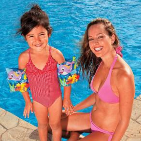 Agora as crianças vão poder se divertir na piscina com estes simpáticos personagens do fundo do mar do Flutuador de Braço Estampado da Intex!