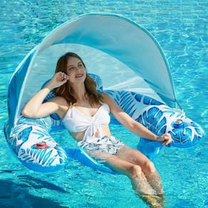 - Bóia de piscina inflável com cobertura solar mais alta e removível - A cobertura é mais alta, oferece uma visão melhor e o máximo conforto. Dossel bem ventilado com malha traseira e UPF50, tem ótimo fluxo de ar para se manter fresco e confortável.