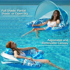 - Boia inflável para piscina com cobertura solar mais alta e removível – o dossel é mais alto, oferece uma melhor visão e o máximo conforto. Dossel bem ventilado com malha traseira e FPS 50, tem ótimo fluxo de ar para ficar fresco e confortável.