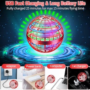 - ??Design USB recarregável e seguro?Estes brinquedos de bola voadora podem ser carregados através de qualquer porta USB. Esta espacial voadora leva 25 minutos para uma única carga e 8 a 10 minutos para voar. O brinquedo de bola voadora brilhará intensamente durante o voo, parecendo uma estrela cadente de néon. O brinquedo da voadora realizou testes rigorosos. O material é muito macio, o invólucro protetor de design esférico é adotado para garantir a segurança, durabilidade e resistência ao