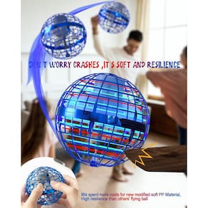 [Gaiola protetora e leve] O divertido brinquedo de bola voadora tem uma gaiola, que é feita de um novo material ABS macio modificado para 2023, que é leve, flexível, resistente a quedas e envolve hélices. Além disso, as camadas de malha atualizadas não causam danos aos dedos de seus filhos.
