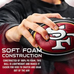 - FUTEBOL DE ESPUMA SAN FRANCISCO 49ERS: Esta bola de futebol de espuma de poliuretano exclusiva é diferente de qualquer outro futebol disponível, é especialmente projetada com logotipos 3D dando vida ao logotipo do seu time!