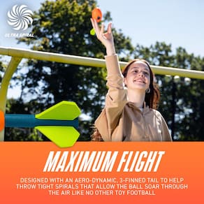- Vôo máximo: Esta bola de futebol Vortex é projetada com uma cauda de 3 barbatanas aerodinâmicas para ajudar a lançar espirais apertadas que permitem que a bola voe pelo ar como nenhum outro brinquedo de futebol