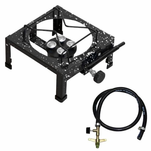 Os Fogões Semi-Industriais Cook Esmaltado com Caulim ROA, é uma excelente escolha para você usar em Acampamentos, Pescaria, na Estrada, no Camping etc. Alto desempenho no cozimento dos mais variados tipos de alimentos, facilitando no preparo de refeições rápidas. É prático, leve, resistente e de fácil manuseio, sua principal vantagem é o seu alto custo beneficio e sua estrutura totalmente esmaltada com resistência ao fogo.Marca: ROALinha: CookMaterial: Chapa de Ferro EsmaltadoQuantidade de Bocas: 02 Boca de Alta Pressão com 04 Caulins (bicos espalhadores de chama)Funcionamento: Gás GLP com Mangueira Normalizada para Alta Pressão e Registro de Alta PressãoDimensões do Fogão: L 22cm x A14cm x P 26,5cmObs: Acompanha Mangueira Normalizada e Registro de Alta Pressão. Marca: ROA - Linha Black