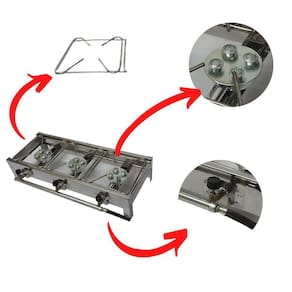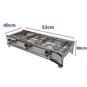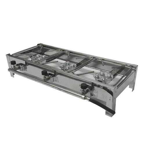 Fugão 3 Bocas - Inox É constituído por 3 bocas - cada uma contendo 4 saídas para gás, 1 registro distorcedor que será conectado ao botijão de gás, possibilitando cozimento rápido ou lento devido seus registros de precisãoSendo perfeita para barraca de lanches, food truck ou pretende começar seu próprio negócio, locais com pouco espaço e pode ser transportada para outros locais sem dificuldades. dimensão do fogão:Altura: 13cmLargura: 29 cmComprimento: 63,5 cm