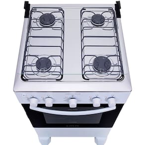 Caracteristicas: Tampa de vidro Mesa de inox Manipuladores removiveis Acendimento automatico Visor amplo na porta do forno Vidro interno removivel Puxador tubular Capacidade do forno 50 L Pes novo design mais clean e mais altos Trempes em nova trama, alem de mais robustas, adere melhor a base das panelas e reduz a instabilidade. Nao possui luz de forno Forno limpa facil