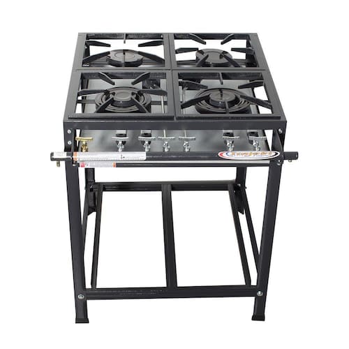O Fogão 4 Bocas é ideal para uso doméstico ou para o ramo industrial. Foi desenvolvido com grelhas 30x30 cm em ferro fundido e possui 2 queimadores duplos e 2 queimadores simples.