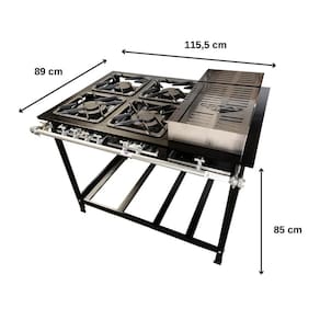 Esse Fogão conta com sua mesa toda estampada, o que impede o acúmulo de resíduos em suas emendas, garantindo máxima higiene e segurança, conta também com banho maria de 70x30 cm.