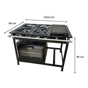 Esse Fogão conta com sua mesa toda estampada, o que impede o acúmulo de resíduos em suas emendas, garantindo máxima higiene e segurança, conta também com chapa bifeteira em ferro fundido de 70x30 cm.