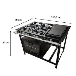 Esse Fogão conta com sua mesa toda estampada, o que impede o acúmulo de resíduos em suas emendas, garantindo máxima higiene e segurança, conta também com chapa bifeteira em ferro fundido de 70x30 cm.