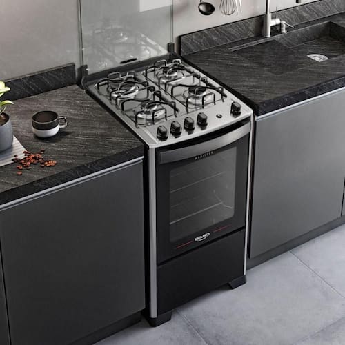 O Magister foi criado para os apaixonados por design e modernidade que querem um produto sofisticado e repleto de recursos. O design e um espetaculo a parte. Impecavel e elegante, ele conta com uma porta toda em vidro, cantoneiras em inox e um puxador em aluminio escovado. Esses detalhes dao ao fogao um visual moderno e luxuoso, que chama a atencao de qualquer um.