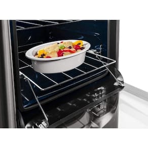 Forno com uma prateleira autodeslizante e outra prateleira com duas opções de regulagem de altura, facilitam o uso e fornecem diversas opções de preparo.