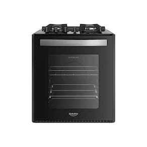 A versão 4 bocas conta com 2 queimadores Semirrápido de 1,7kW, 1 queimador Rápido de 2,0kW, 1 queimador Chama de 2,5kW e forno com capacidade de 60 litros.