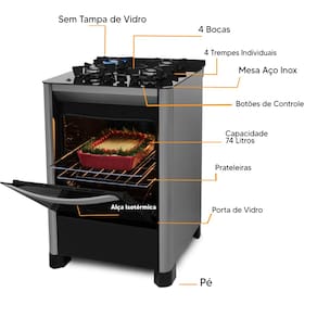 Equipado com queimadores de tecnologia italiana, garante alta performance no preparo das receitas. Seu forno de 74 litros proporciona espaço ideal para diferentes tipos de preparo, com excelente retenção de calor e economia de energia.