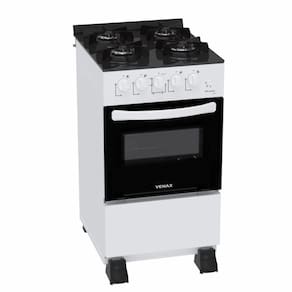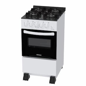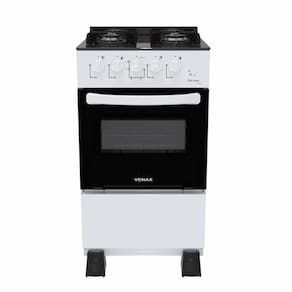 Tipo: Fogão de Piso Acendimento: Automático Queimadores: 1 Grande e 3 Médios Trempe dos Queimadores: Individual Esmaltada Mesa Queimadores: Vidro Preto Base das Trempes: Esmaltada na cor Preta Botões: Removíveis Válvula de Segurança: Sim Luz no Forno: Não Prateleiras no Forno: Uma Regulável Revestimento do Forno: Esmalte Easy Clean Temperatura: 5 posições de 180C Até 290C Função Grill: Não Timer Grill: Não Timer Gás: Não Espeto Giratório: Não Bandeja Coletora de Resíduos: Não Porta Removível: Não Porta do Forno: Vidro Panorâmico Vidro Duplo na Porta: Sim Puxador da Porta: Aço na Cor Branco Estufa: Não Entrada de Gás: Lado Esquerdo Visto de Frente Cores das Laterais: Branco Marca: Venax