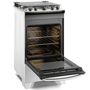 Com uma capacidade de 4 bocas, sendo uma tripla chama, que vai deixar suas receitas mais homogêneas, o forno com os 72,6 litros, entrega um amplo espaço interno, com uma porta em vidro que permite visualizar o preparo do prato. Além de ter um revestimento FastClean que facilita a limpeza evitando o acumulo de gorduras.