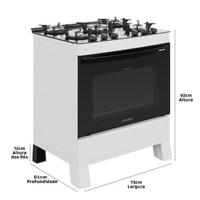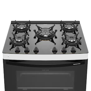 Diferenciais: - Mesa em vidro temperado de 6mm: mais resistência e segurança no uso diário, além de um visual moderno que valoriza a cozinha e facilita a limpeza. - 5 bocas com trempes de ferro fundido com seis pontos de apoio: proporcionam melhor estabilidade para panelas e mais segurança durante o preparo das receitas. - Queimador central com tripla chama Sabaf: oferece maior potência e agilidade no preparo das receitas, sendo ideal para panelas maiores e cozimentos que exigem mais intensidade. - Forno com 94 litros de capacidade: espaço ideal para preparar diferentes receitas com praticidade no dia a dia. - Tecnologia 100% Cleartec no forno: facilita a limpeza interna e evita o acúmulo de gordura. - Amplo visor e luz interna no forno: permite acompanhar o preparo dos alimentos sem precisar abrir a porta. - Puxador em alumínio escovado: mais resistência e um visual moderno que valoriza o design do produto. - Manipuladores ergonômicos e texturizados com acendimento automático total: oferecem controle preciso da chama e mais conforto no manuseio. - Alimentação: gás GLP. - Voltagem: Bivolt (127V/220V). - Ignição automática: acendimento rápido e prático.