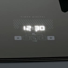 Unindo potência e sofisticação, o novo design com acabamento premium e puxador ergonômico em alumínio escovado garante máxima estabilidade para suas panelas e total facilidade para visualizar o forno, permitindo que você programe cada receita com a precisão de um timer sonoro moderno e robusto.
