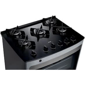 O Fogão a Gás CFS5VAR da Consul possui design moderno que além de embelezar sua cozinha, ainda facilita a limpeza. O fogão conta com 5 bocas, acendimento automático, mesa de vidro temperado e grades individuais em ferro fundido, que aumentam a estabilidade das panelas, deixando o preparo das refeições mais seguro. Ainda possui forno Limpa + Fácil, com capacidade de 96 litros e prateleira deslizante com três níveis de regulagem de altura.