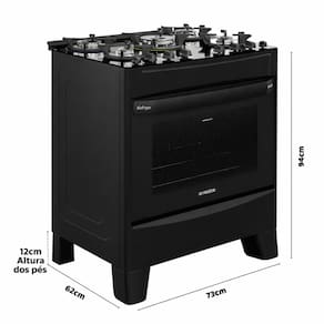 Diferenciais: - 5 queimadores com potência total de 12,1 kW: permitem preparar diferentes receitas ao mesmo tempo com mais agilidade e eficiência. - Queimador Tripla Chama Sabaf de 3,2 kW: oferece alta potência de calor, ideal para panelas maiores e preparos que exigem mais intensidade. - Trempes em ferro fundido com seis pontos de apoio: proporcionam máxima estabilidade para panelas de diferentes tamanhos, aumentando a segurança durante o uso. - Manipuladores Top Control ergonômicos na mesa: facilitam o controle da chama e proporcionam mais praticidade no manuseio. - Forno 100% elétrico com 90 litros de capacidade: espaço ideal para preparar diversas receitas com praticidade no dia a dia. - Duas grades ajustáveis: permitem melhor organização interna e mais versatilidade no preparo dos alimentos. - Porta do forno com vidro Low-e: mantém até 70% do calor dentro do forno, garantindo aquecimento mais rápido e maior eficiência térmica. - Luz interna de 40W: permite acompanhar o preparo dos alimentos sem a necessidade de abrir a porta do forno. - Função AirFryer integrada: possibilita preparar alimentos crocantes e saborosos sem óleo, tornando as refeições mais práticas e saudáveis. - Timer integrado: desliga automaticamente o forno e a luz interna ao final do tempo programado, oferecendo mais controle e segurança. - Puxador em alumínio escovado: proporciona maior resistência e um acabamento elegante. - Alimentação: a gás/elétrico. - Voltagem: 220V. - Ignição automática: acendimento rápido e prático.