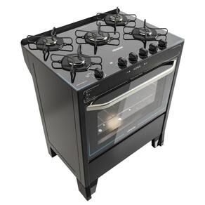 Fogão 5 Bocas Braslar Automático Mesa De Vidro Horus Top Control Preto Bivolt