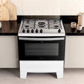 Para maior praticidade, o fogão possui 2 prateleiras deslizantes, permitindo que você ajuste facilmente a posição dos alimentos dentro do forno. Com a lâmpada do forno, você poderá visualizar seus pratos com clareza e verificar seu cozimento sem precisar abrir a porta do forno, economizando energia e mantendo a temperatura interna estável.