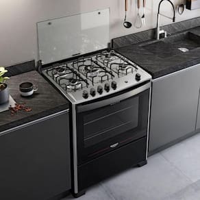 O Magister foi criado para os apaixonados por design e modernidade que querem um produto sofisticado e repleto de recursos. O design e um espetaculo a parte. Impecavel e elegante, ele conta com uma porta toda em vidro, cantoneiras em inox e um puxador em aluminio escovado. Esses detalhes dao ao fogao um visual moderno e luxuoso, que chama a atencao de qualquer um.