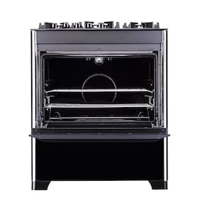 Características: Mesa de vidro Forno amplo, visor Manípulos removíveis Capacidade do forno de 100 litros 5 Bocas Não possui tampa Trempes individuais em ferro fundido com 6 pontos 2 Grades de forno