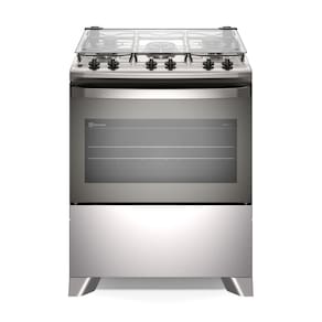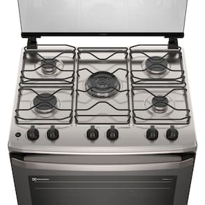 O Fogão 5 bocas Electrolux Cinza Efficient Mesa Inox, PerfectCook e VaporBake® (FE5IG) possibilita menos esforço na hora de cozinhar. Com a Exclusiva Tecnologia PerfectCook, o forno possui melhor isolamento térmico no interior da cavidade selada e oferece maior controle de temperatura com menos perda de calor, reduzindo o tempo de cozimento dos alimentos em até 43%. Para que suas receitas fiquem ainda mais gostosas, você pode optar por cozinhar com o VaporBake® e conseguir, por meio da cocção a vapor, uma melhora de até duas vezes em aparência, crocância, textura e sabor em massas e pães. E quando você precisar apenas aquecer os pratos, basta usar o Regenerar a Vapor, que preserva o sabor e o aroma da comida sem ressecá-la. Para trazer mais velocidade no preparo das suas grandes receitas, nosso novo fogão tem a Tripla Chama, que deixa suas receitas mais homogêneas e saborosas. O design robusto da superfície da Mesa de Inox Compartimentada evita que líquidos escorram sob a mesa, permitindo uma limpeza profunda do fogão sem esforço. O Vidro Interno do Forno é removível e pode ser retirado com facilidade para garantir uma limpeza sem esforço e profunda do seu forno. O forno do Fogão 5 bocas Electrolux Cinza Efficient Mesa Inox, PerfectCook e VaporBake® (FE5IG) ainda conta com a Tecnologia FastClean, que possui revestimento que impede a entrada de sujeiras, facilitando a remoção de gordura e resíduos de comida, com 2 anos de garantia.