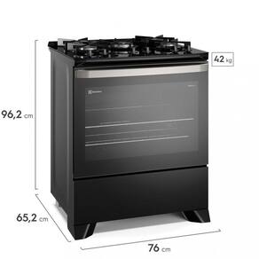 O novo Fogão Electrolux 5 Bocas -FE5GP- oferece uma solução completa na hora de cozinhar, além de 108,9 litros de capacidade com mais espaço para suas receitas. Equipado com tecnologia VaporBake, o forno permite que o cozimento a vapor facilite o preparo de pães e massas com uma finalização perfeita. Quando precisar reaquecer seus pratos, utilize o Regenerar a Vapor, que preserva o sabor e o aroma sem ressecá-los, evitando o desperdício de alimentos. Por meio da cavidade selada, a Tecnologia PerfectCook oferece maior controle de temperatura e permite um melhor isolamento térmico no interior do forno. A Mesa de Vidro Temperado permite uma limpeza sem esforço. Além disso, o forno do Fogão ainda conta com a Tecnologia FastClean, um revestimento que impede a penetração de sujeira, permitindo a remoção de gordura e resíduos de comida sem esforço.