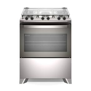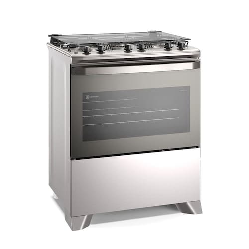 Fogão 5 bocas Electrolux FE5IG, oferece mais funcionalidade no dia a dia, com forno PerfectCook de cavidade selada e melhor isolamento térmico, reduzindo o tempo de cozimento em até 43%. Conta com VaporBake® para cocção a vapor e mais textura e crocância, além da função Regenerar a Vapor para aquecer sem ressecar. Traz ainda tripla chama para mais potência e rapidez, mesa de inox compartimentada que evita escorrimentos, vidro interno removível e tecnologia FastClean que facilita a limpeza.