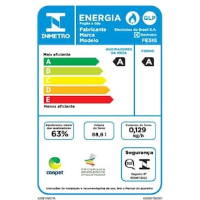 Características: Acabamento do forno: Fast Clean Frequência: 60 Hz Luz no forno: Sim Número de Bocas: 5 Pés Niveladores: Sim Tipo de cavidade: Selada Tipo de forno: Gás Tipo de Puxador: Alumínio Tripla Chama / Multi Chama: Tripla Chama Vidro interno: Removível Volume do forno: 88.6 L Trempe (Grade da Mesa): Individual / Arame Cilíndrico Tipo de Mesa: Inox Tampa de vidro: Sim Sistema Bloqueia Gás: Sim Número de prateleiras: 2 simples Ignição: Automática Botões Removíveis: Sim Inmetro: 003467/2022